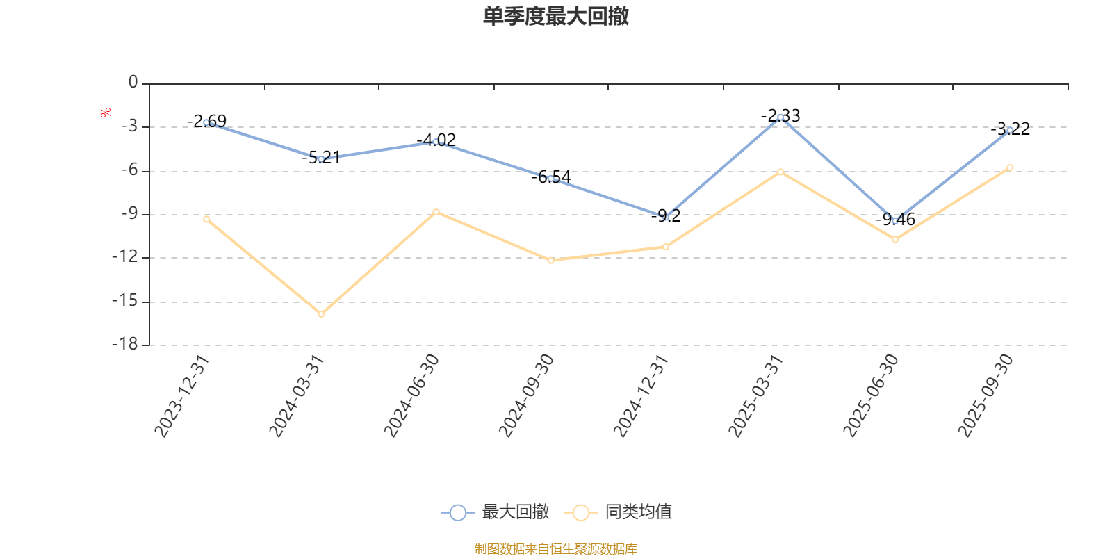 截至10月27日,基金成立以来最大回撤为9.46%。单季度最大回撤出现在2025年二季度,为9.46%。