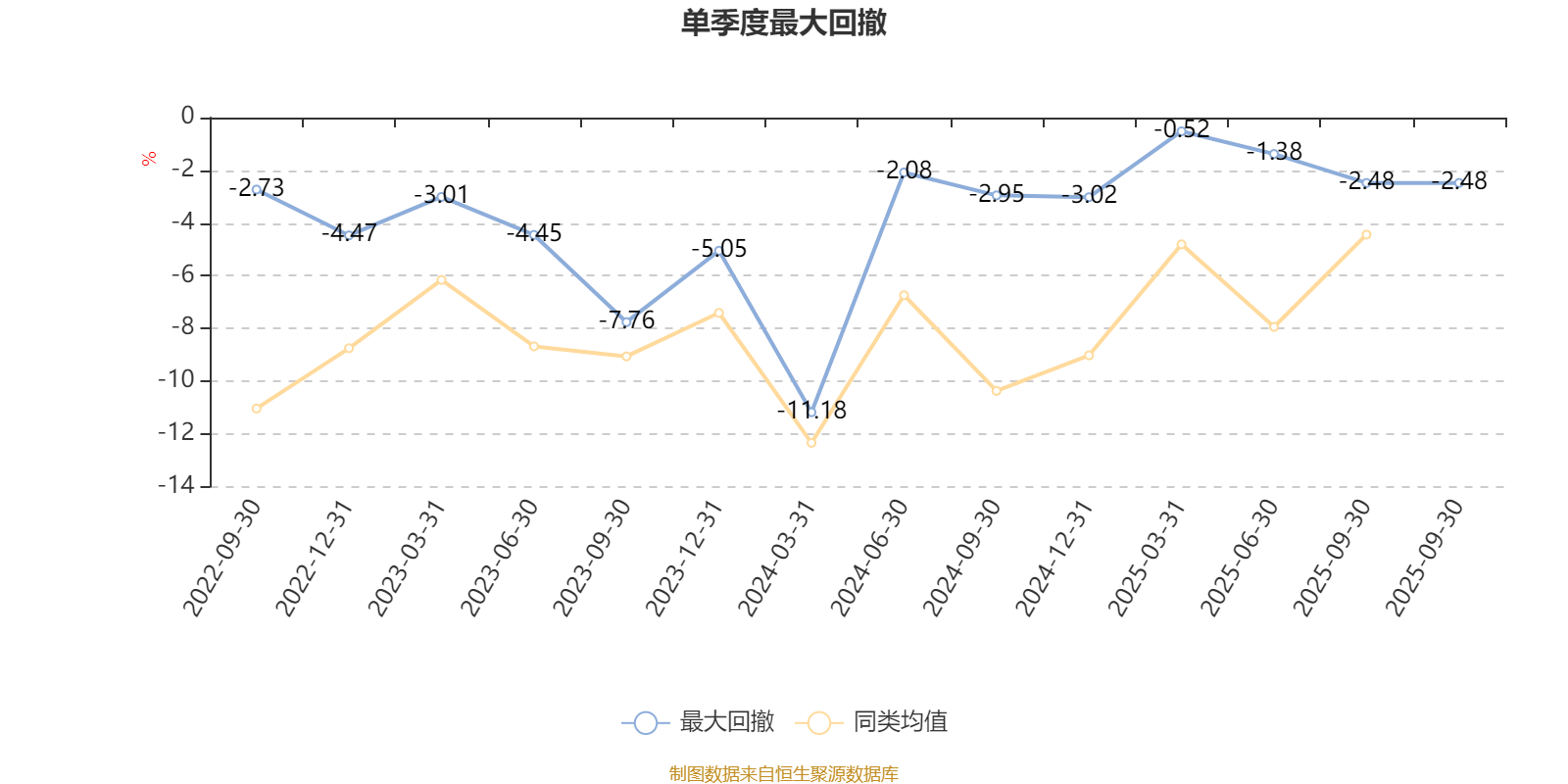截至10月24日,基金近三年最大回撤为21.03%,同类可比基金排名38/119。单季度最大回撤出现在2024年一季度,为11.18%。