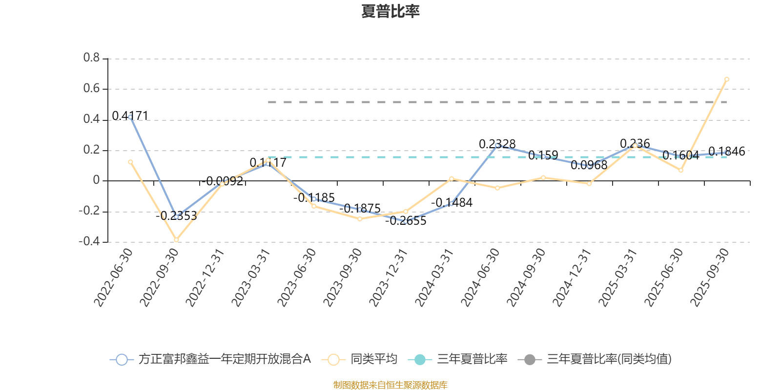 截至9月30日,基金近三年夏普比率为0.1547,位于同类可比基金104/119。