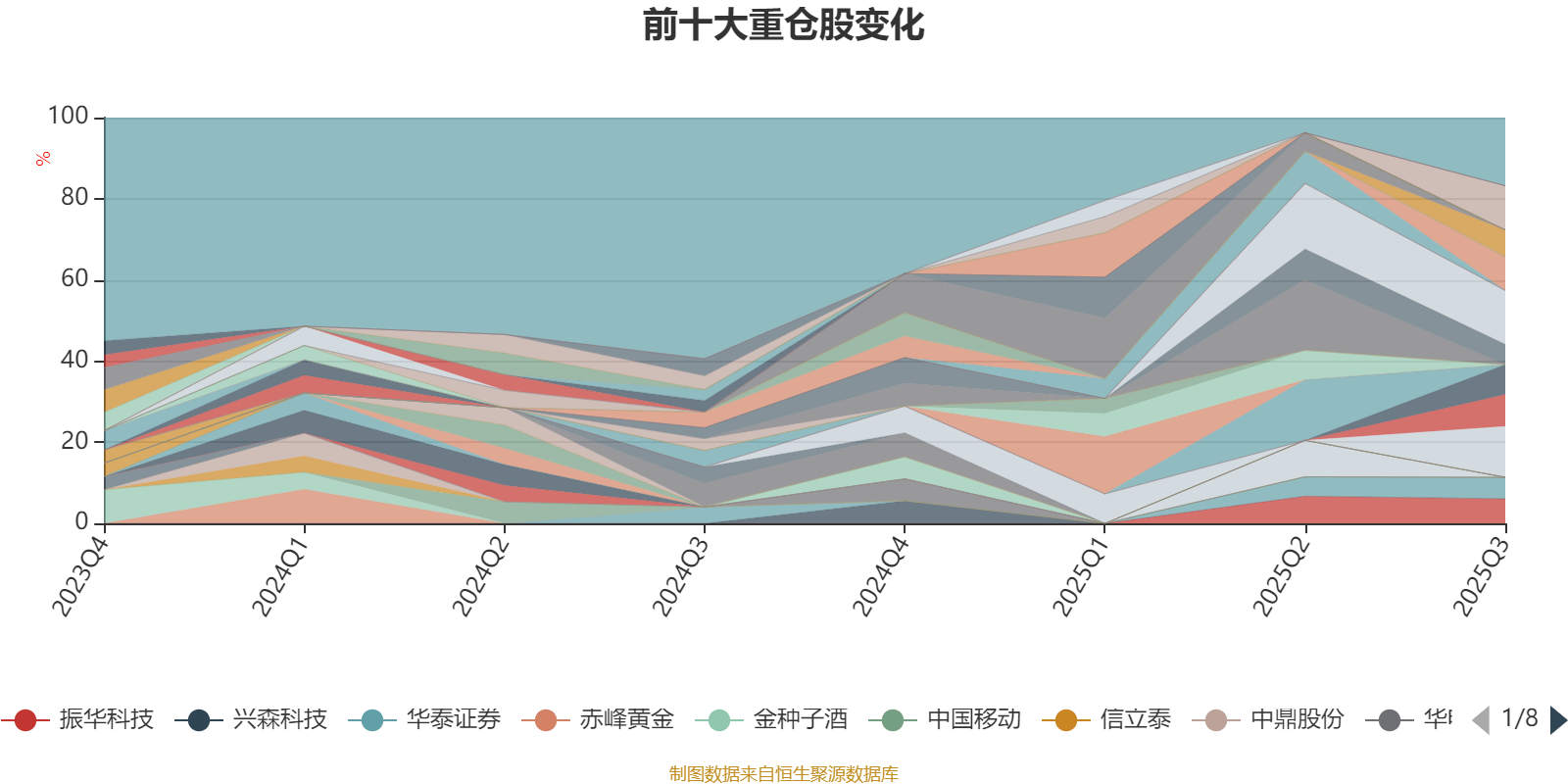 截至2025年三季度末,基金十大重仓股分别是申能股份、中国银行、康缘药业、东方证券、康辰药业、甘李药业、恩华药业、振华科技、华泰证券、建设银行。