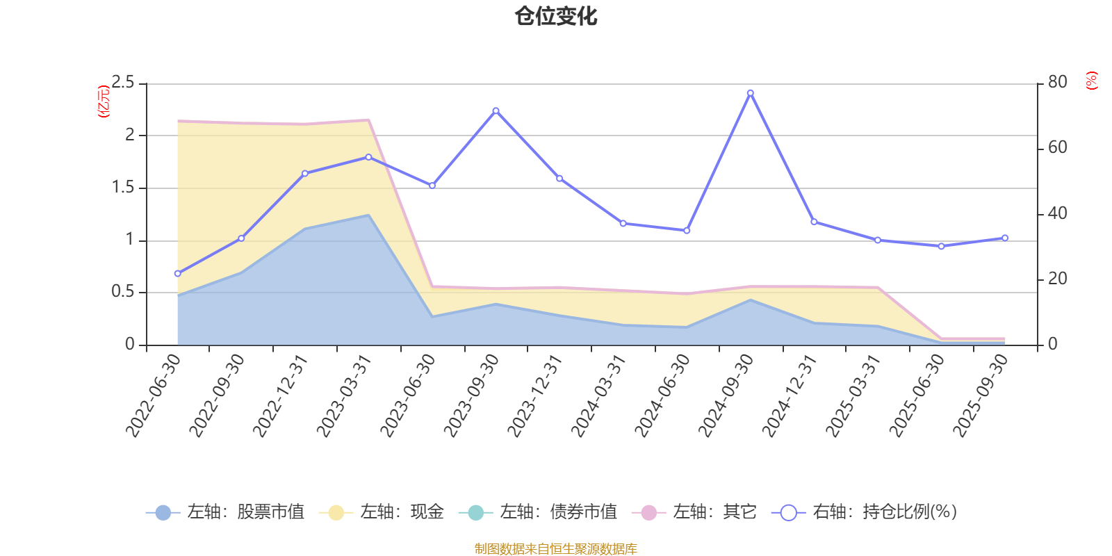据定期报告数据统计,近三年平均股票仓位为46.95%,同类平均为67.37%。2024年三季度末基金达到77.08%的最高仓位,2022年上半年末最低,为21.88%。