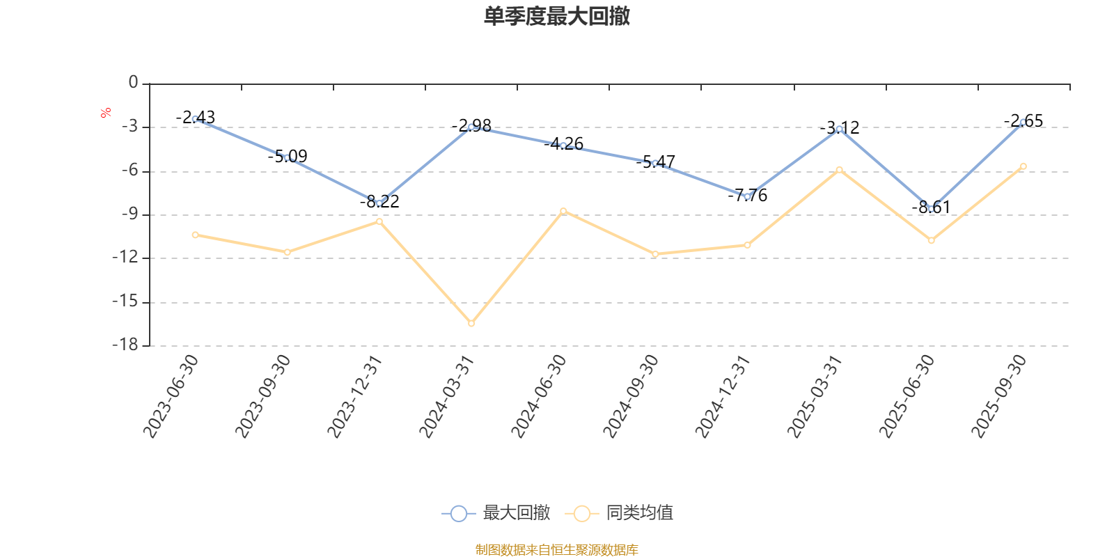 截至10月27日,基金成立以来最大回撤为10.8%。单季度最大回撤出现在2025年二季度,为8.61%。
