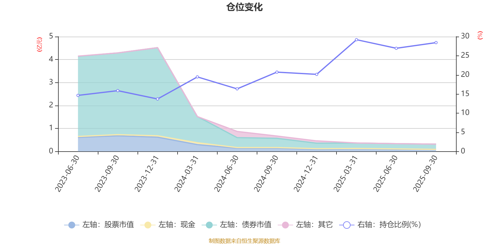 据定期报告数据统计,成立以来平均股票仓位为20.55%,同类平均为19.14%。2025年一季度末基金达到29.19%的最高仓位,2023年末最低,为13.7%。