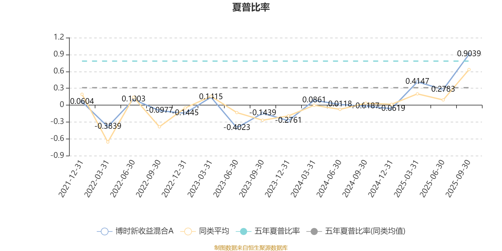 截至9月30日,基金近三年夏普比率为0.8069,位于同类可比基金253/1285。