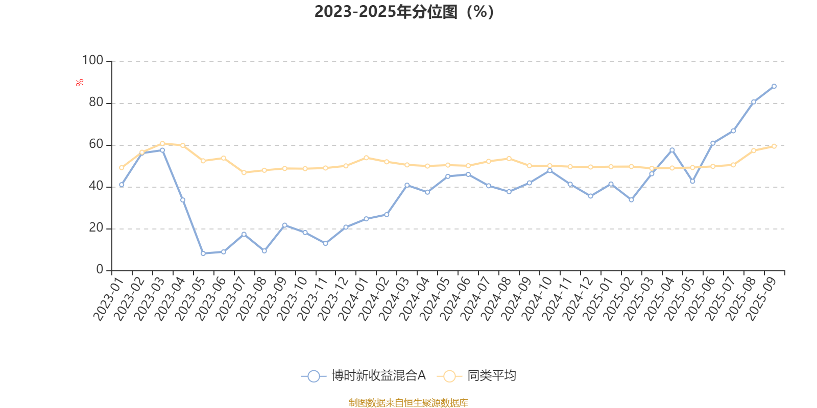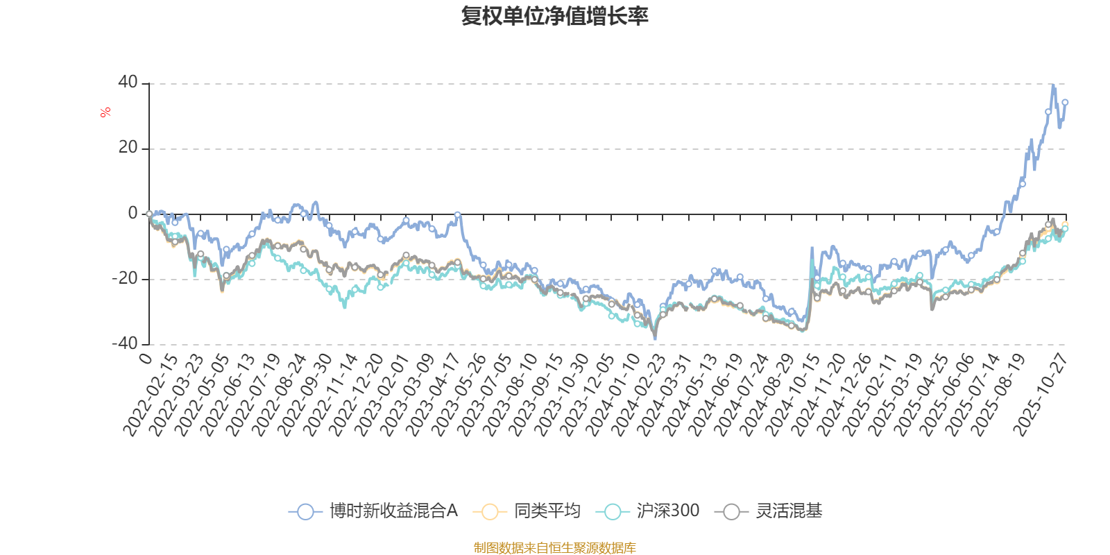 截至10月27日,博时新收益混合A近三个月复权单位净值增长率为29.25%,位于同类可比基金193/1287;近半年复权单位净值增长率为50.75%,位于同类可比基金157/1287;近一年复权单位净值增长率为51.56%,位于同类可比基金149/1287;近三年复权单位净值增长率为45.55%,位于同类可比基金165/1286。