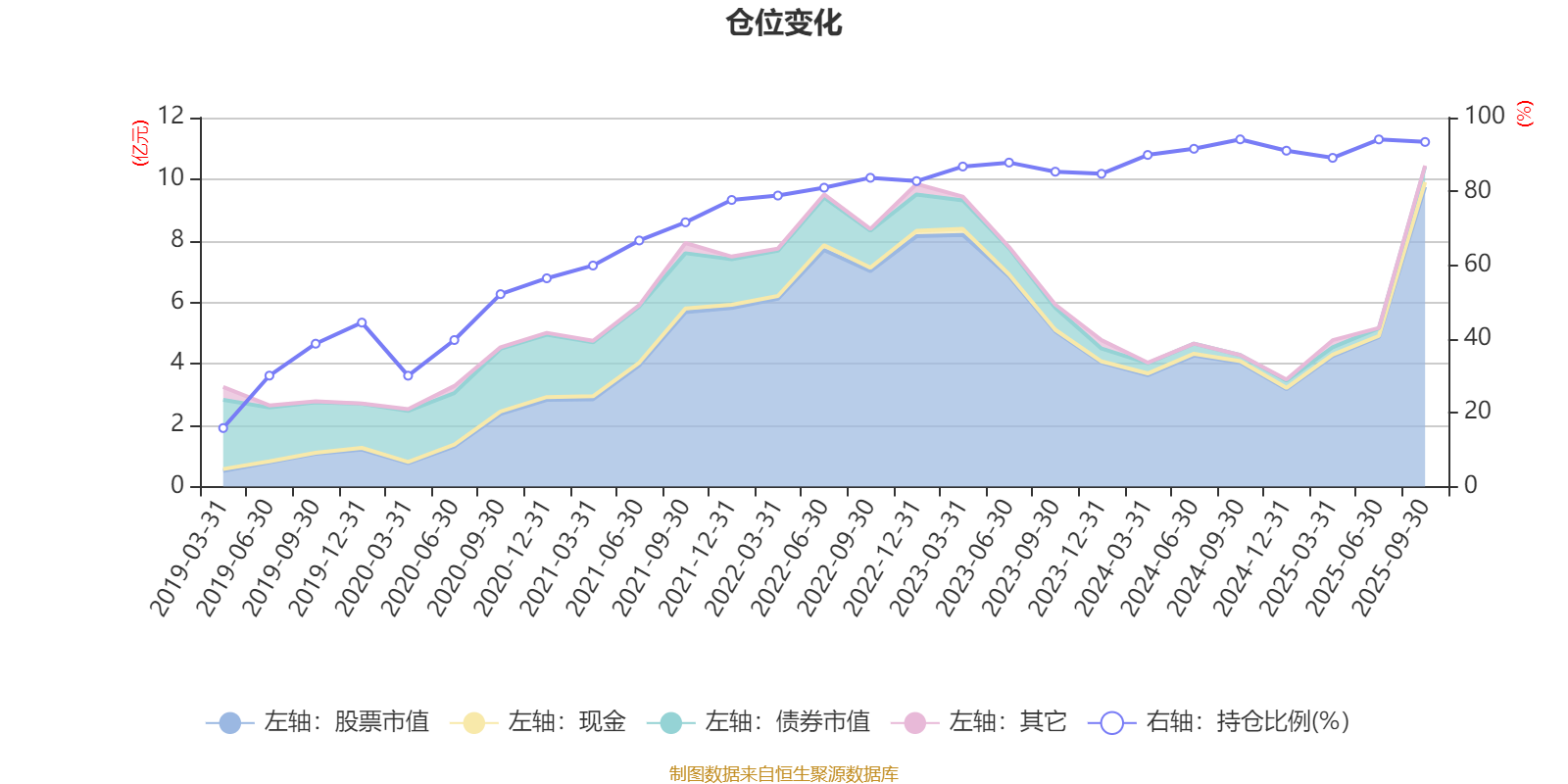 据定期报告数据统计,近三年平均股票仓位为89.22%,同类平均为72.28%。2024年三季度末基金达到94.1%的最高仓位,2019年一季度末最低,为15.86%。