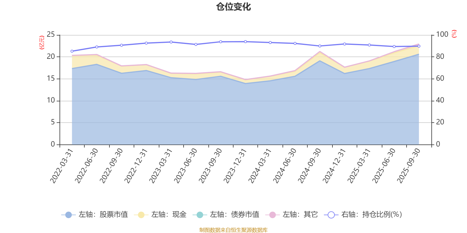据定期报告数据统计,近三年平均股票仓位为91.86%,同类平均为87.62%。2023年末基金达到93.91%的最高仓位,2022年一季度末最低,为85.2%。