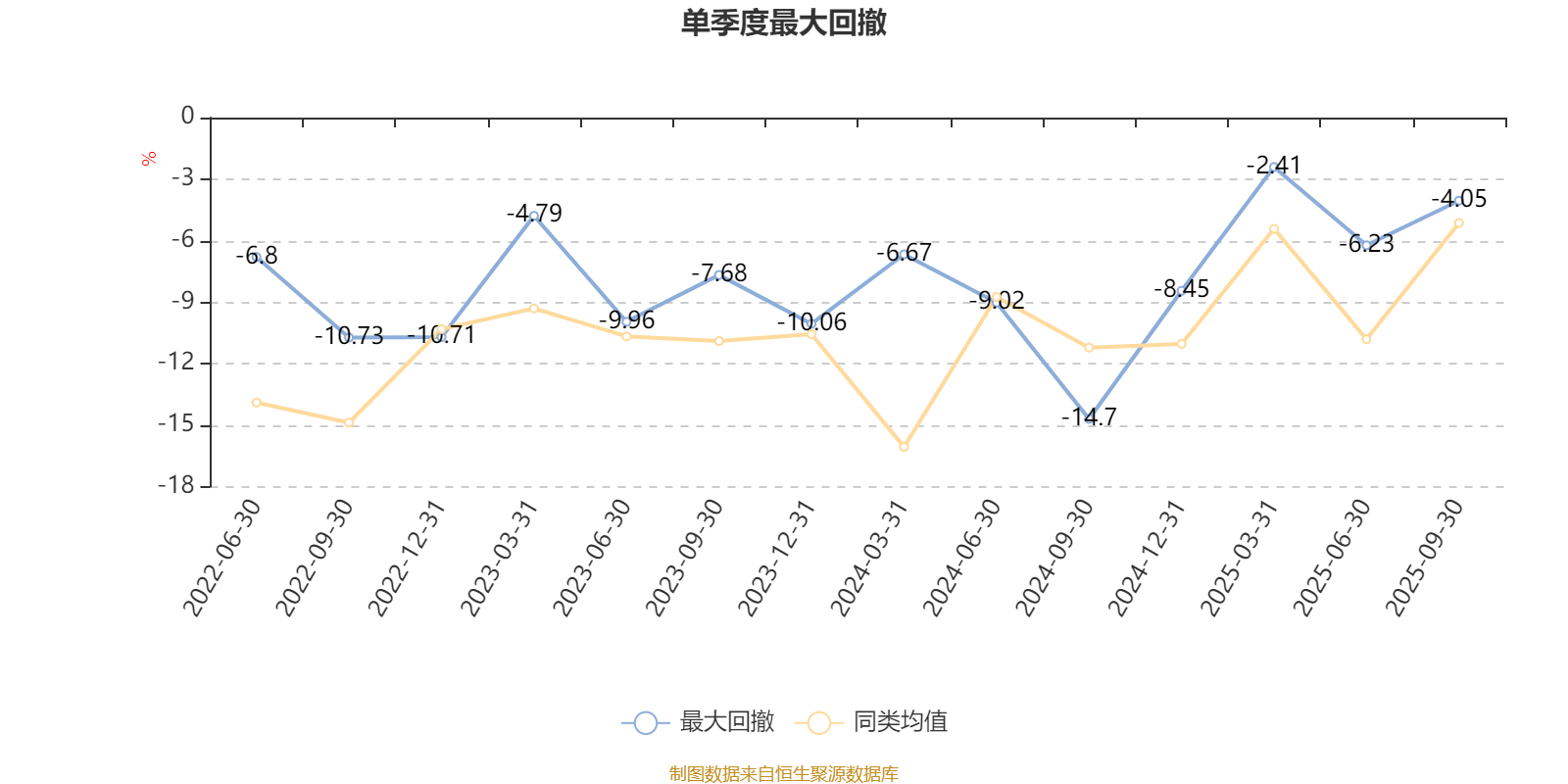 截至10月27日,基金近三年最大回撤为21.04%,同类可比基金排名13/177。单季度最大回撤出现在2024年三季度,为14.7%。