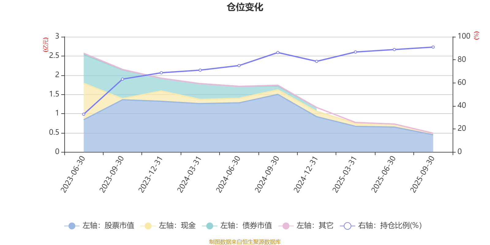 据定期报告数据统计,成立以来平均股票仓位为74.26%,同类平均为83.73%。2025年三季度末基金达到91.05%的最高仓位,2023年上半年末最低,为32.81%。