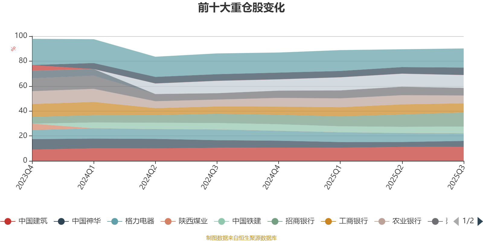 该基金持股集中度较高,且持股标的较为稳定,近2年前十大重仓股集中度长期超过60%。截至2025年三季度末,基金十大重仓股分别是中国建筑、招商银行、华润置地、工商银行、农业银行、格力电器、建设银行、中国中铁、中国铁建、中国神华。