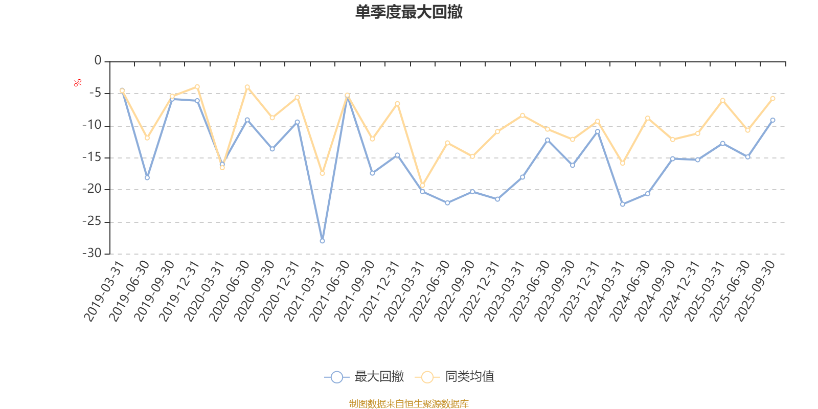 截至10月27日,基金近三年最大回撤为57.46%,同类可比基金排名352/363。单季度最大回撤出现在2021年一季度,为27.99%。