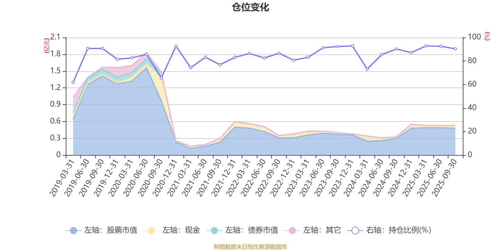 据定期报告数据统计,近三年平均股票仓位为87.68%,同类平均为83.73%。2025年一季度末基金达到92.82%的最高仓位,2019年一季度末最低,为61.8%。