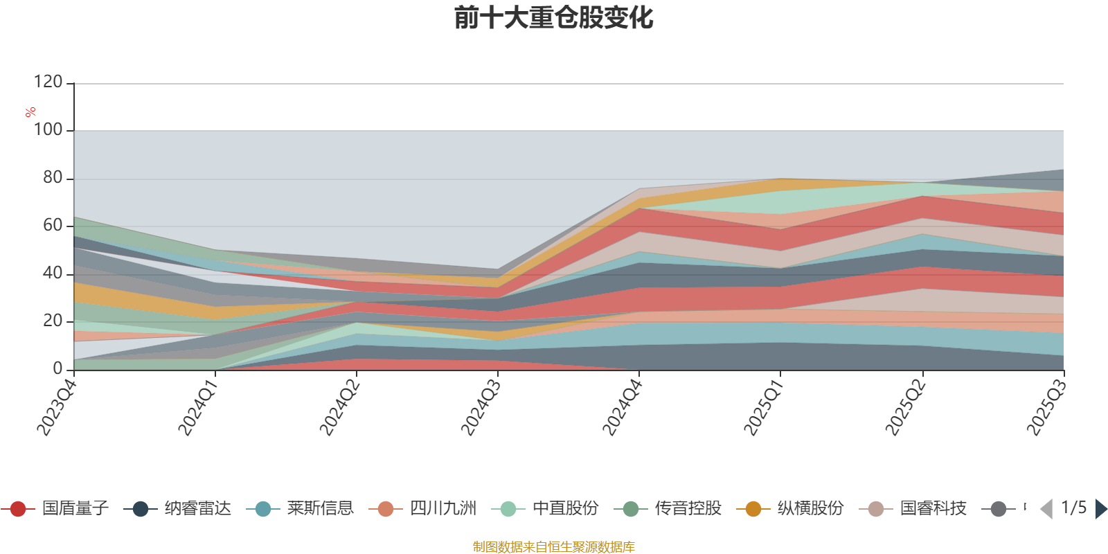 截至2025年三季度末,基金十大重仓股分别是莱斯信息、宗申动力、卧龙电驱、中科星图、中信海直、万丰奥威、深城交、四川九洲、国睿科技、纳睿雷达。