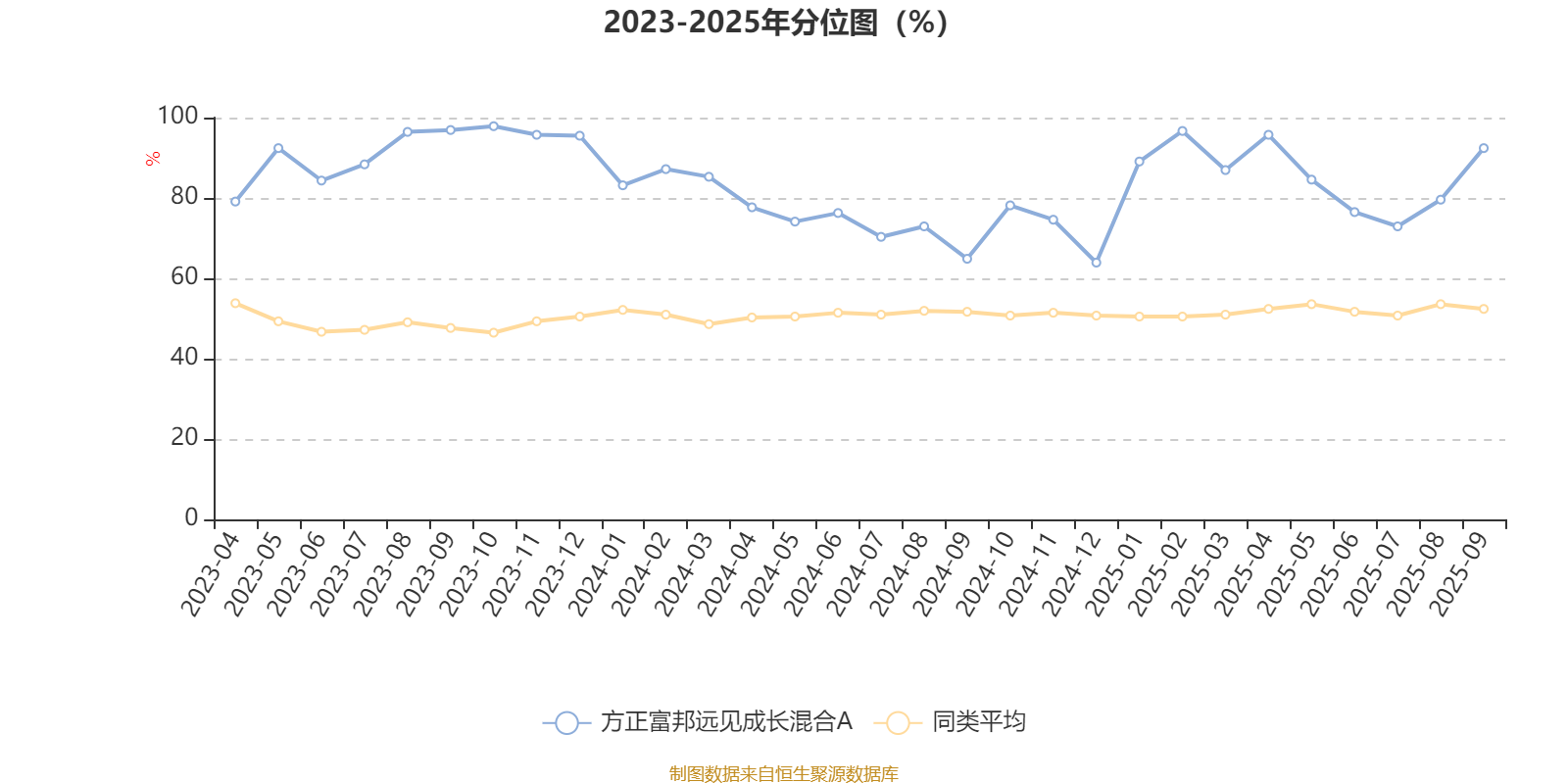 通过所选区间该基金净值增长率分位图,可以观察该基金与同类基金业绩比较情况。图为坐标原点到区间内某时点的净值增长率在同类基金中的分位数。