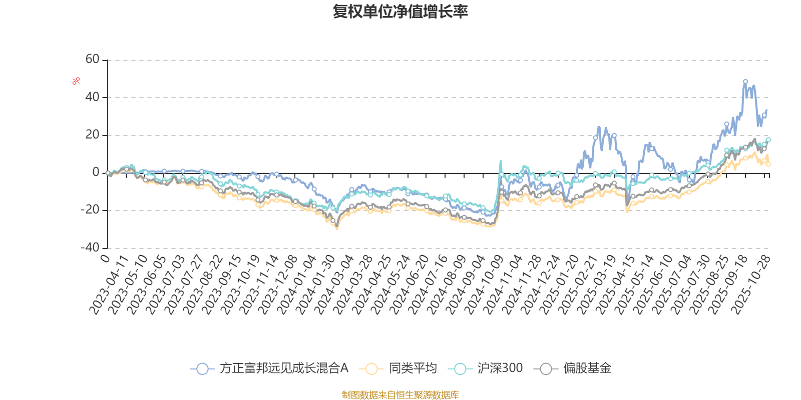 截至10月27日,方正富邦远见成长混合A近三个月复权单位净值增长率为24.29%,位于同类可比基金136/689;近半年复权单位净值增长率为24.84%,位于同类可比基金386/688;近一年复权单位净值增长率为37.96%,位于同类可比基金174/653。