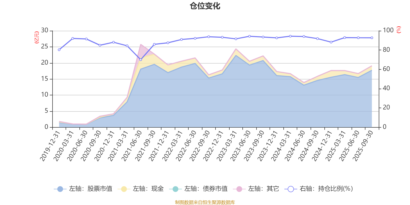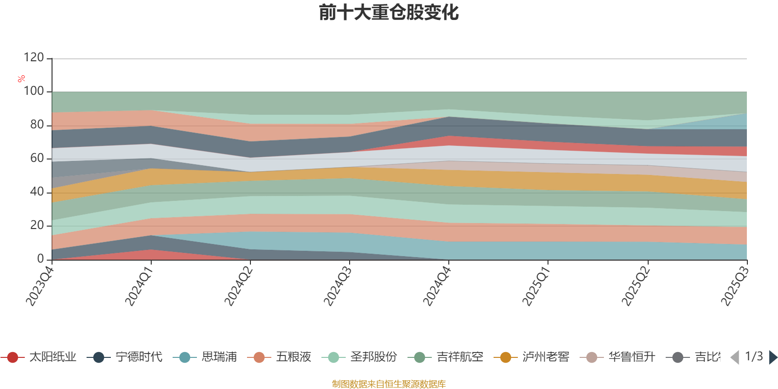 该基金持股集中度较高,近2年前十大重仓股集中度长期超过60%。截至2025年三季度末,基金十大重仓股分别是五粮液、中国巨石、泸州老窖、兆易创新、万华化学、思瑞浦、圣邦股份、吉祥航空、华鲁恒升、华峰化学。