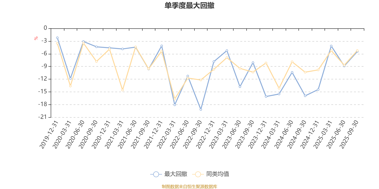 截至10月27日,基金近三年最大回撤为42.82%,同类可比基金排名1002/1274。单季度最大回撤出现在2022年三季度,为19.16%。