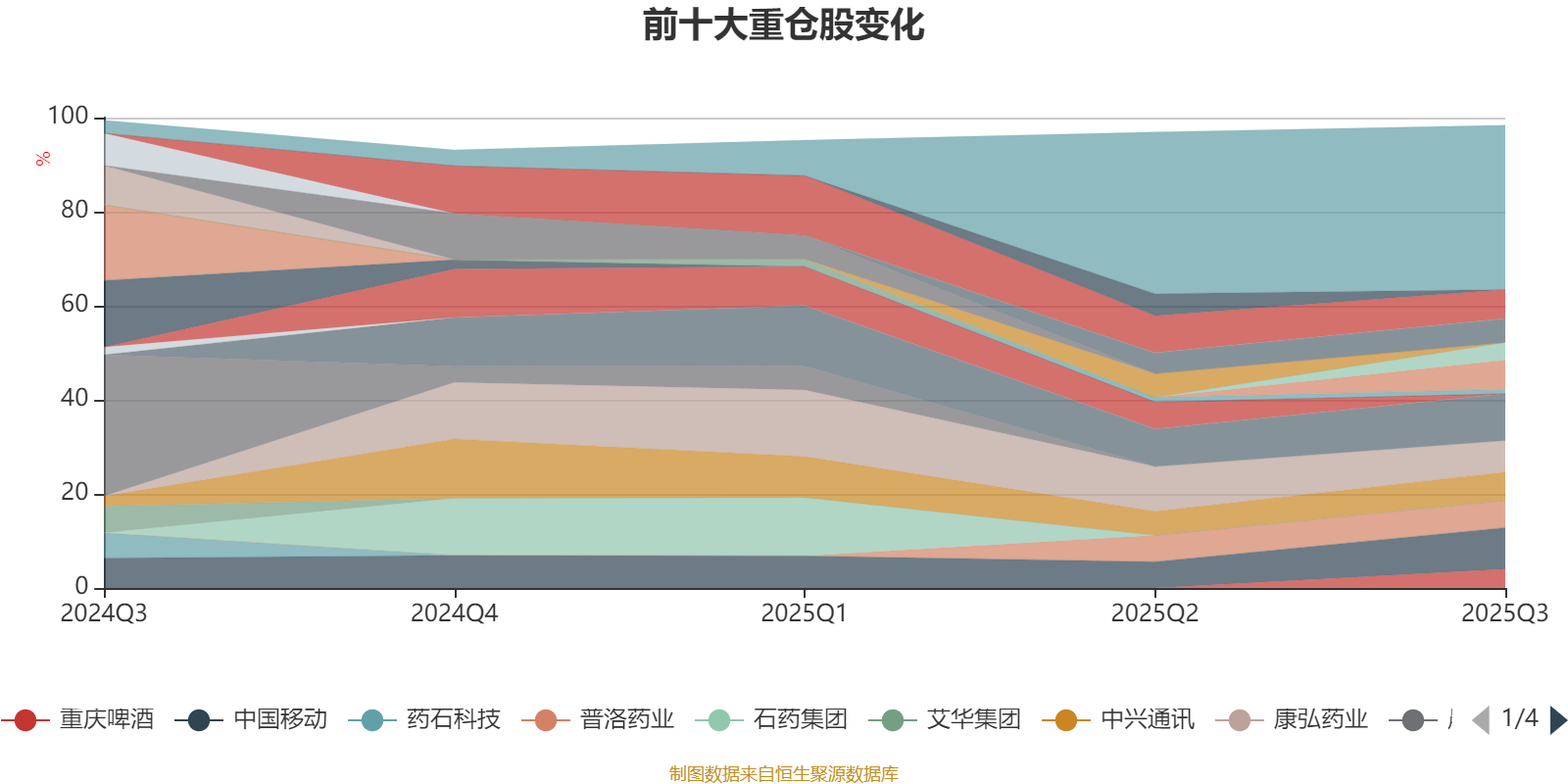 该基金持股集中度较高。截至2025年三季度末,基金重仓股分别是中国海油、中国移动、康弘药业、久立特材、广深铁路、中兴通讯、普洛药业、中国出版、重庆啤酒、安井食品、中国海洋石油。