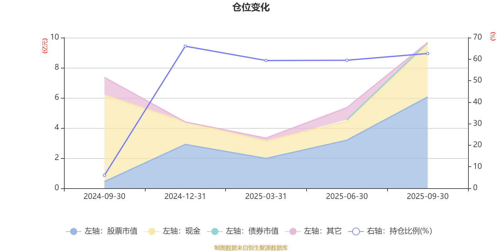 据定期报告数据统计,成立以来平均股票仓位为50.71%,同类平均为85.66%。2024年末基金达到66.03%的最高仓位,2024年三季度末最低,为6.02%。
