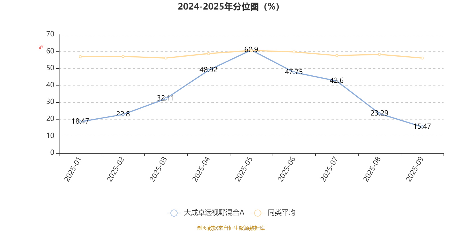 通过所选区间该基金净值增长率分位图,可以观察该基金与同类基金业绩比较情况。图为坐标原点到区间内某时点的净值增长率在同类基金中的分位数。