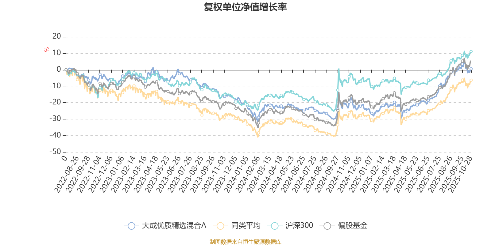 截至10月28日,大成优质精选混合A近三个月复权单位净值增长率为10.58%,位于同类可比基金407/621;近半年复权单位净值增长率为33.44%,位于同类可比基金239/619;近一年复权单位净值增长率为26.71%,位于同类可比基金321/611;近三年复权单位净值增长率为8.20%,位于同类可比基金341/518。
