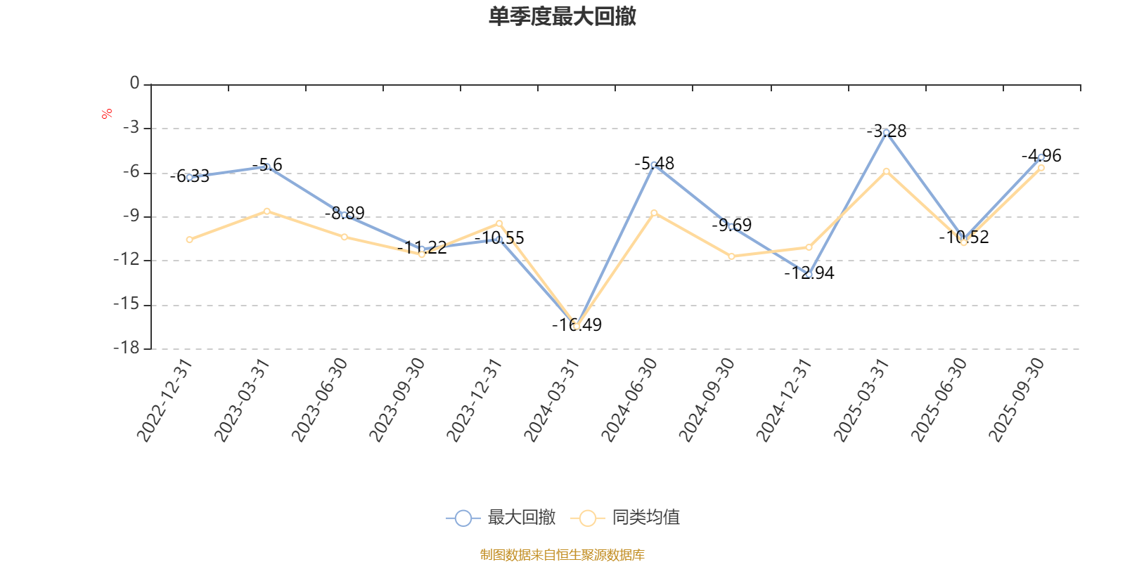 截至10月27日,基金近三年最大回撤为32.95%,同类可比基金排名190/513。单季度最大回撤出现在2024年一季度,为16.49%。