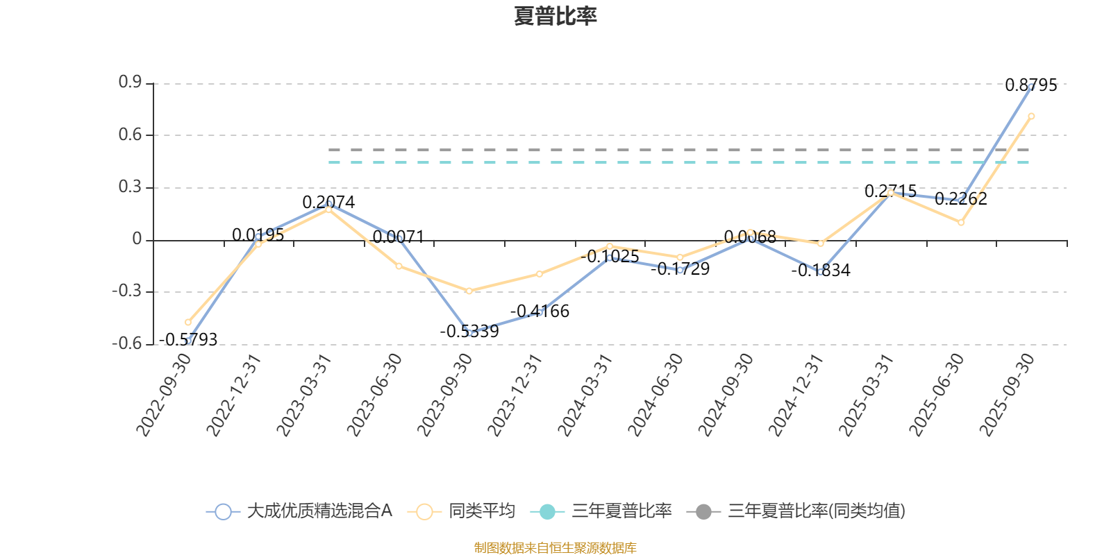 截至9月30日,基金近三年夏普比率为0.4456,位于同类可比基金308/518。