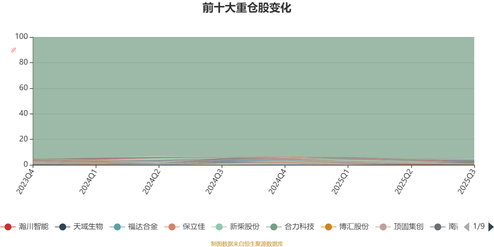 截至2025年三季度末,基金十大重仓股分别是冠中生态、欣龙控股、远翔新材、宁波色母、福建水泥、富春染织、三超新材、合力科技、海波重科、百川畅银。