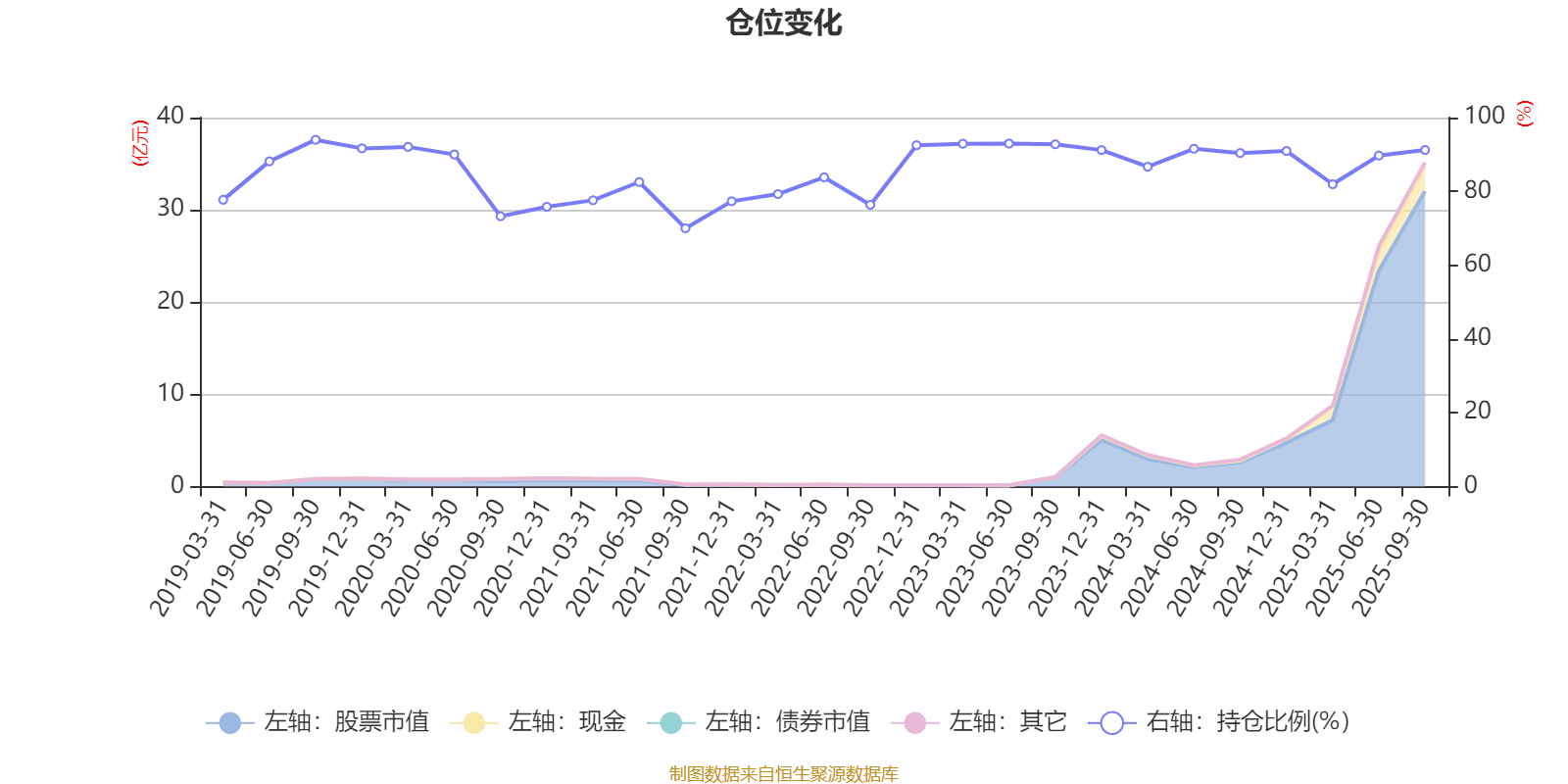 据定期报告数据统计,近三年平均股票仓位为90.4%,同类平均为87.62%。2019年三季度末基金达到93.98%的最高仓位,2021年三季度末最低,为70%。