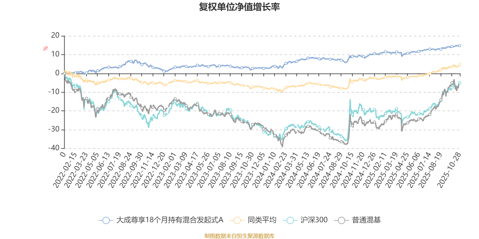 截至10月28日,大成尊享18个月持有混合发起式A近三个月复权单位净值增长率为1.61%,位于同类可比基金407/629;近半年复权单位净值增长率为3.72%,位于同类可比基金450/629;近一年复权单位净值增长率为5.47%,位于同类可比基金431/623;近三年复权单位净值增长率为10.46%,位于同类可比基金335/557。