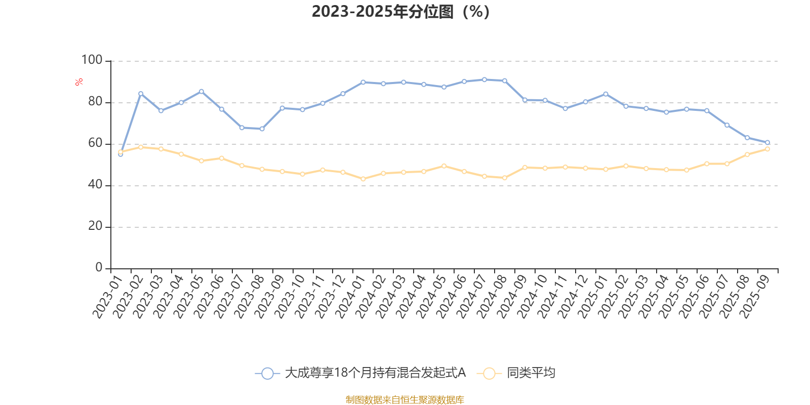 通过所选区间该基金净值增长率分位图,可以观察该基金与同类基金业绩比较情况。图为坐标原点到区间内某时点的净值增长率在同类基金中的分位数。