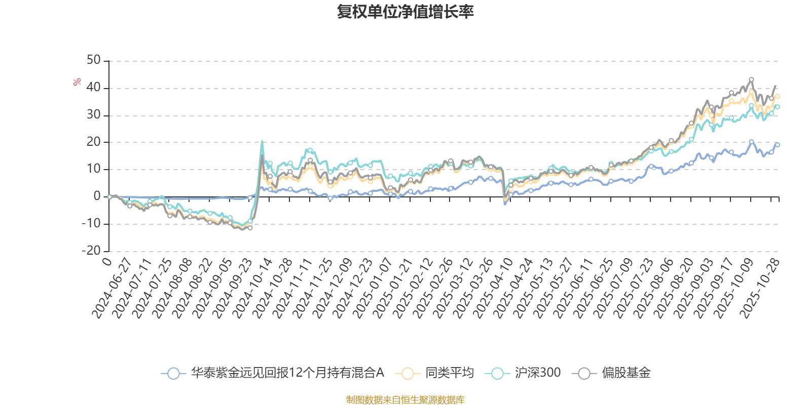 截至10月28日,华泰紫金远见回报12个月持有混合A近三个月复权单位净值增长率为7.63%,位于同类可比基金495/689;近半年复权单位净值增长率为16.17%,位于同类可比基金547/688;近一年复权单位净值增长率为15.84%,位于同类可比基金479/653。