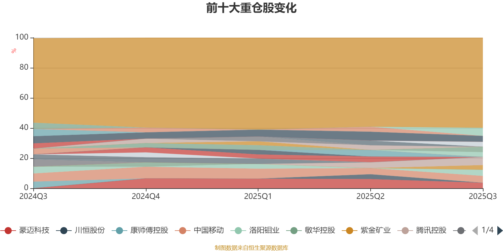 截至2025年三季度末,基金十大重仓股分别是兆易创新、腾讯控股、中国移动、洛阳钼业、宝丰能源、豪迈科技、海天国际、东航物流、达势股份、紫金矿业。