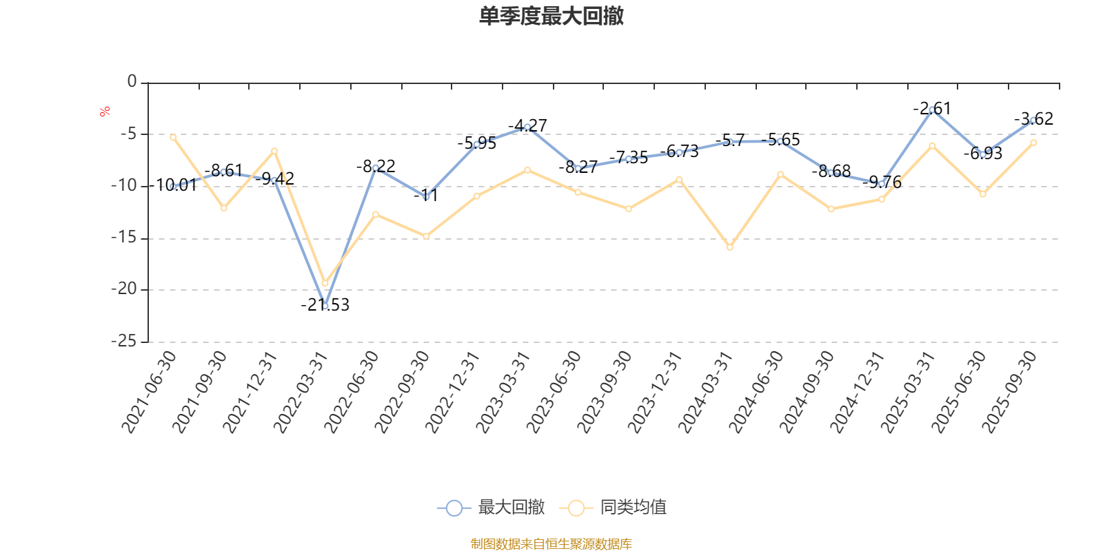 截至10月27日,基金近三年最大回撤为19.41%,同类可比基金排名20/363。单季度最大回撤出现在2022年一季度,为21.53%。