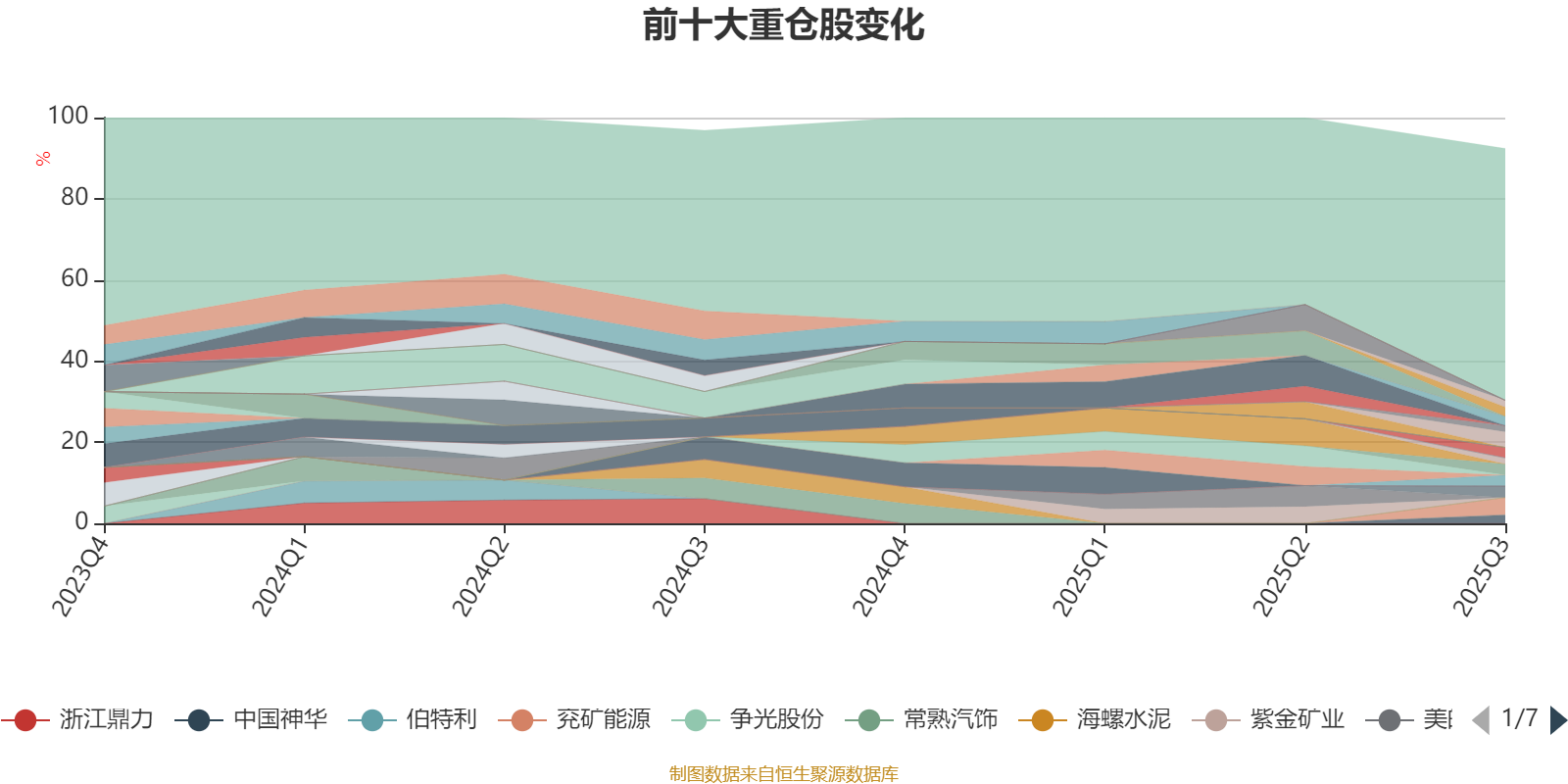截至2025年三季度末,基金重仓股分别是兖矿能源、中远海控、陕西煤业、淮北矿业、格力电器、建设银行、中创智领、中国石油化工股份、中国神华、中国石化、中国石油股份。