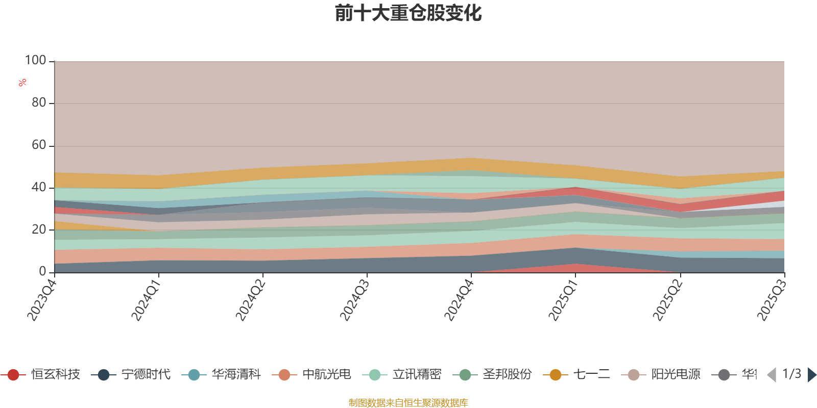 截至2025年三季度末,基金十大重仓股分别是立讯精密、宁德时代、中微公司、中航光电、华峰测控、圣邦股份、华海清科、中国汽研、中兴通讯、华鲁恒升。