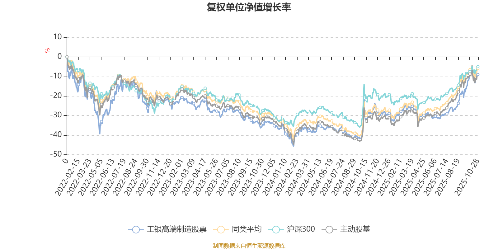 截至10月28日,工银高端制造股票近三个月复权单位净值增长率为23.14%,位于同类可比基金43/167;近半年复权单位净值增长率为29.78%,位于同类可比基金85/166;近一年复权单位净值增长率为27.11%,位于同类可比基金89/164;近三年复权单位净值增长率为19.13%,位于同类可比基金91/156。
