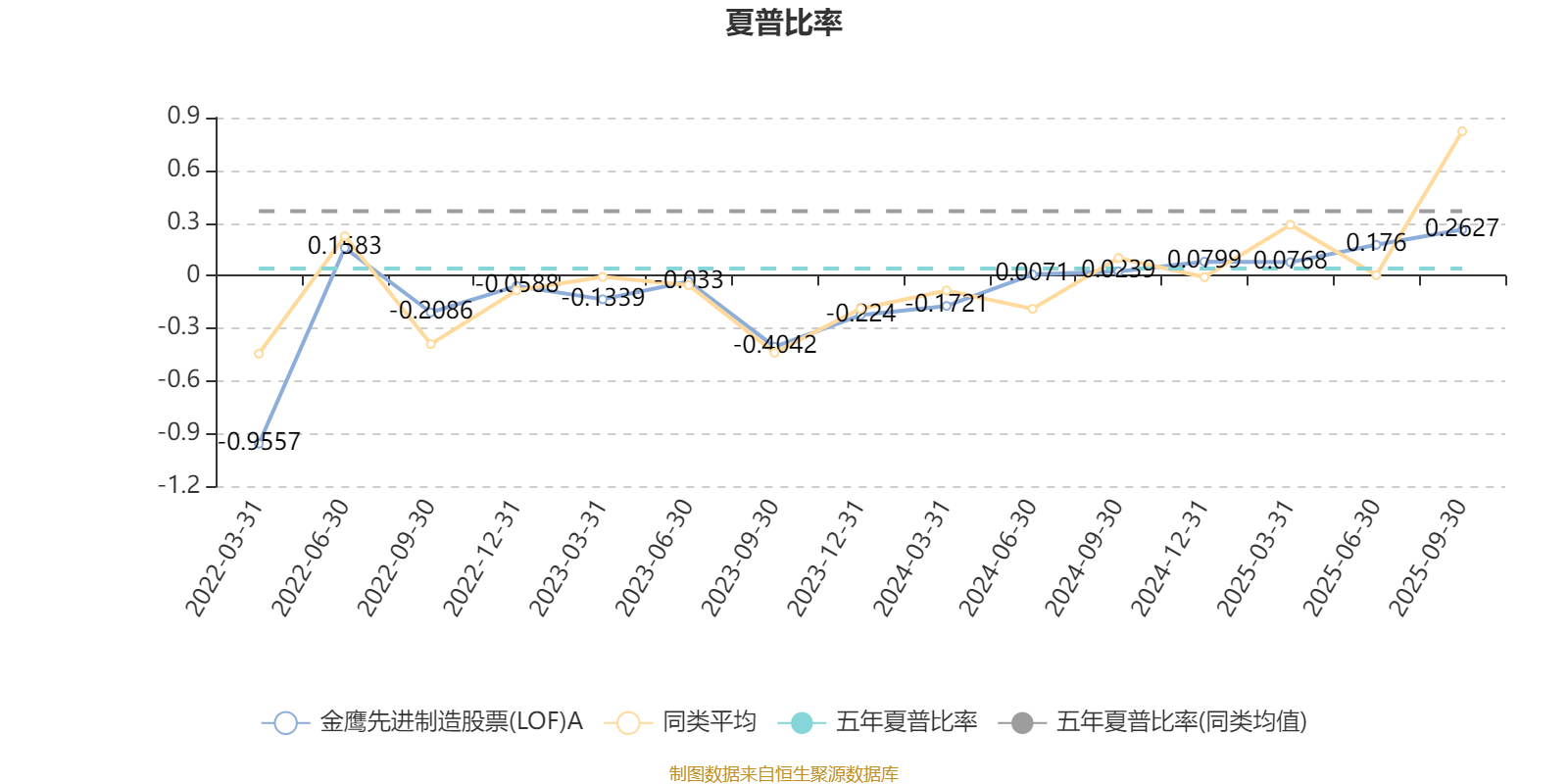 截至9月30日,基金近三年夏普比率为0.1204,位于同类可比基金26/29。