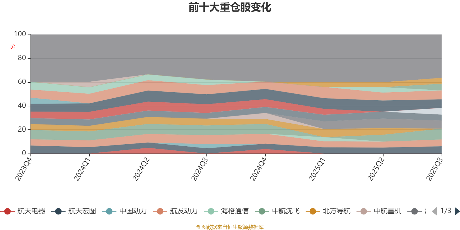 该基金持股集中度较高,且持股标的较为稳定。截至2025年三季度末,基金十大重仓股分别是中航沈飞、中航光电、中航西飞、洪都航空、航天宏图、航发动力、紫光国微、航天电子、鸿远电子、中航高科。