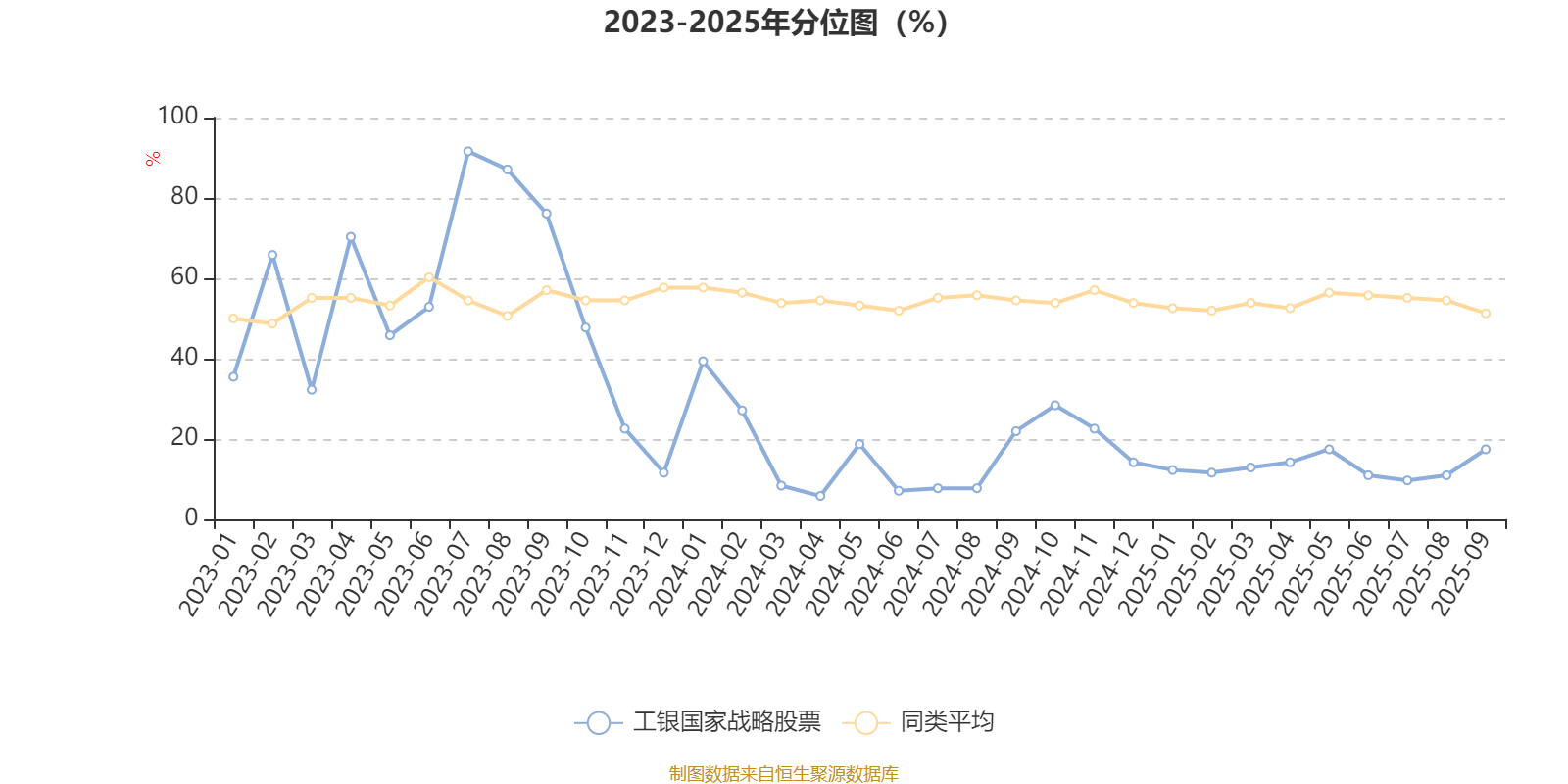 通过所选区间该基金净值增长率分位图,可以观察该基金与同类基金业绩比较情况。图为坐标原点到区间内某时点的净值增长率在同类基金中的分位数。