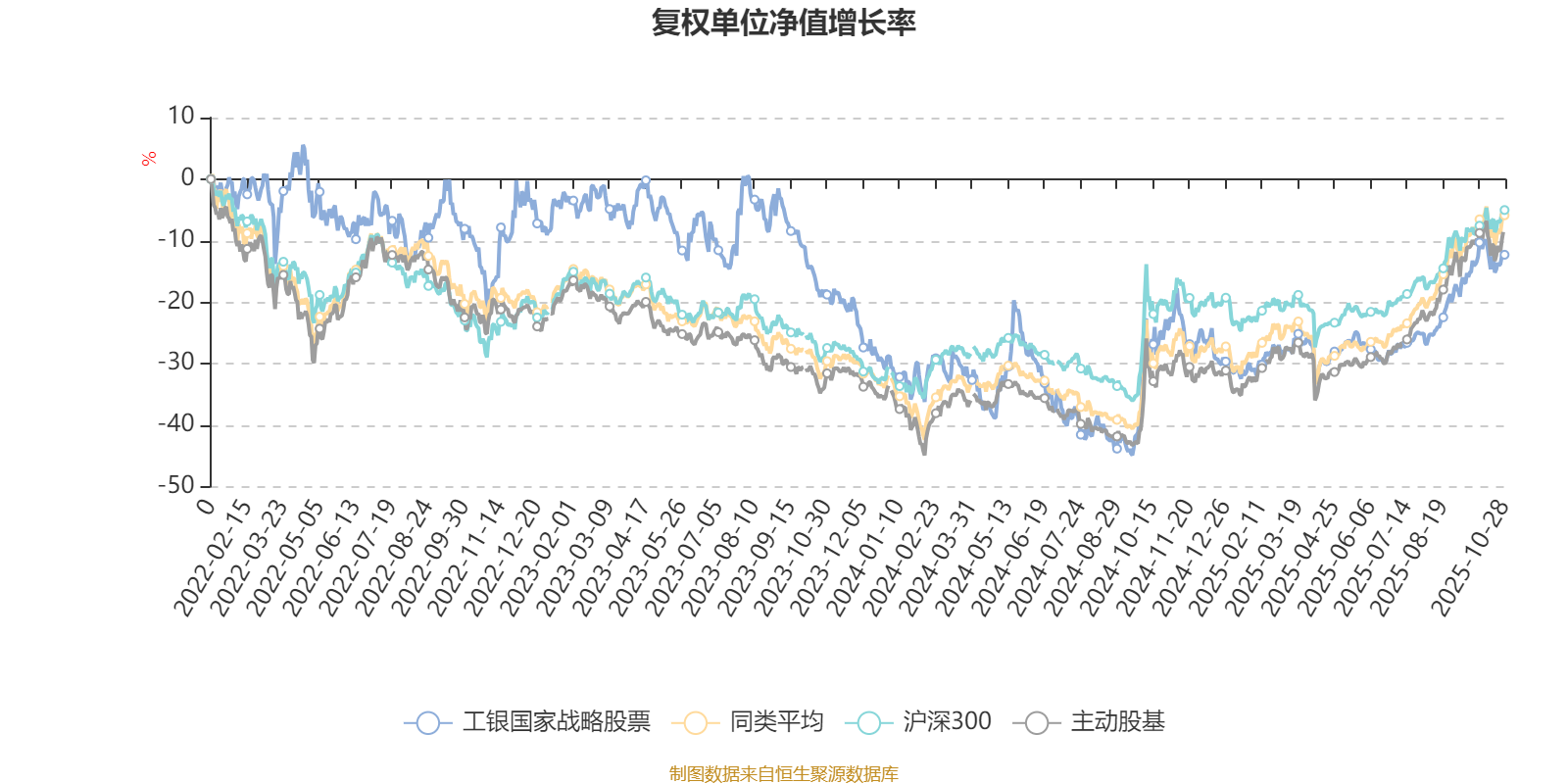 截至10月28日,工银国家战略股票近三个月复权单位净值增长率为17.19%,位于同类可比基金73/167;近半年复权单位净值增长率为22.37%,位于同类可比基金119/166;近一年复权单位净值增长率为13.62%,位于同类可比基金135/164;近三年复权单位净值增长率为5.88%,位于同类可比基金119/156。