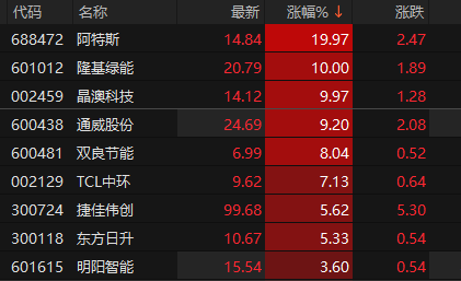 HIT电池概念股持续走高 阿特斯20cm涨停