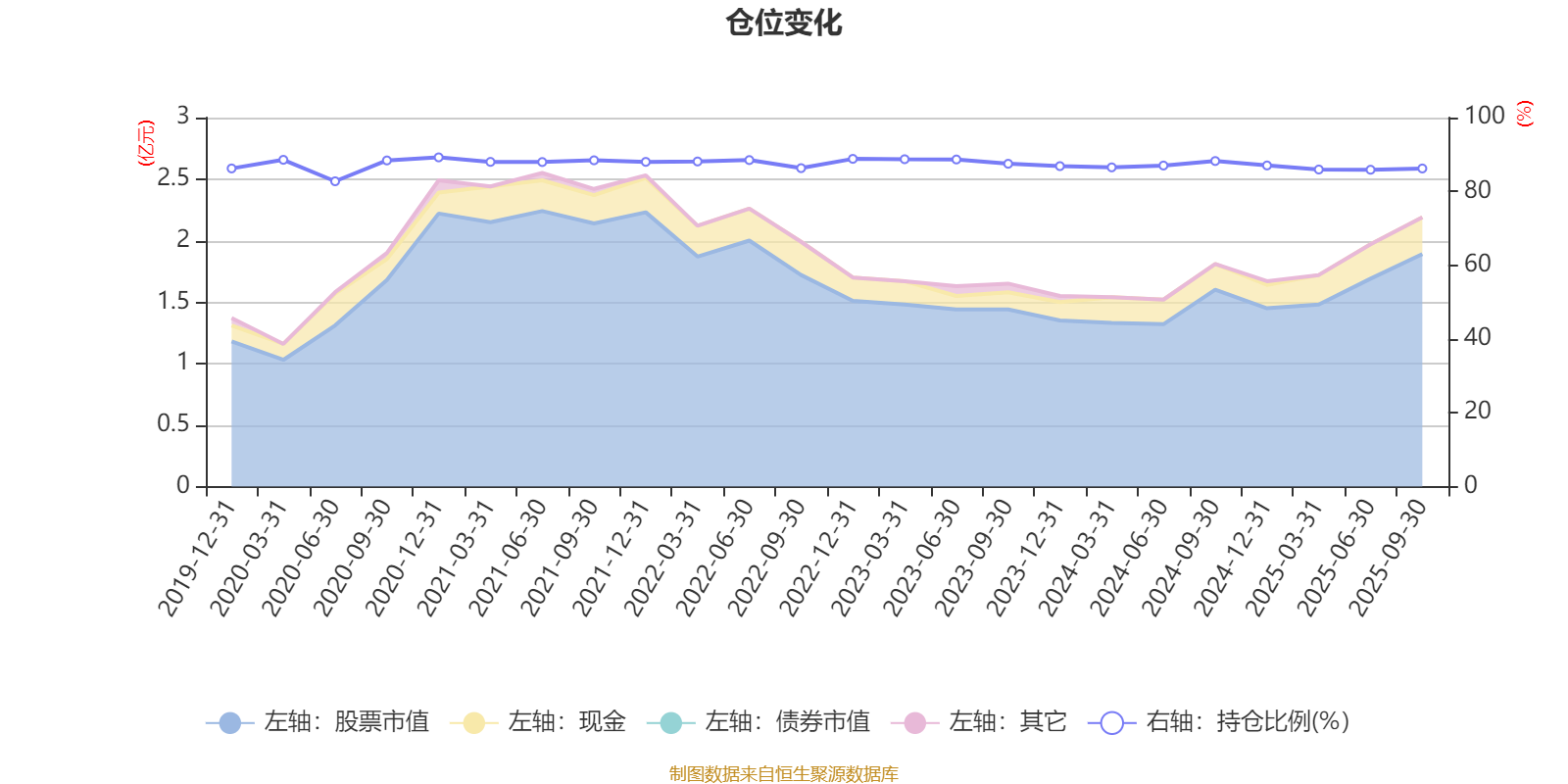 据定期报告数据统计,近三年平均股票仓位为87.28%,同类平均为72.35%。2020年末基金达到89.22%的最高仓位,2020年上半年末最低,为82.74%。