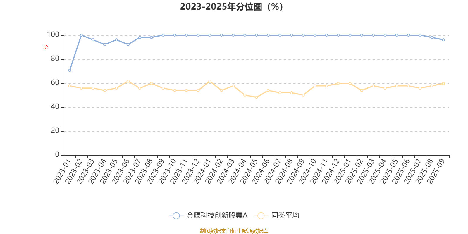 通过所选区间该基金净值增长率分位图,可以观察该基金与同类基金业绩比较情况。图为坐标原点到区间内某时点的净值增长率在同类基金中的分位数。