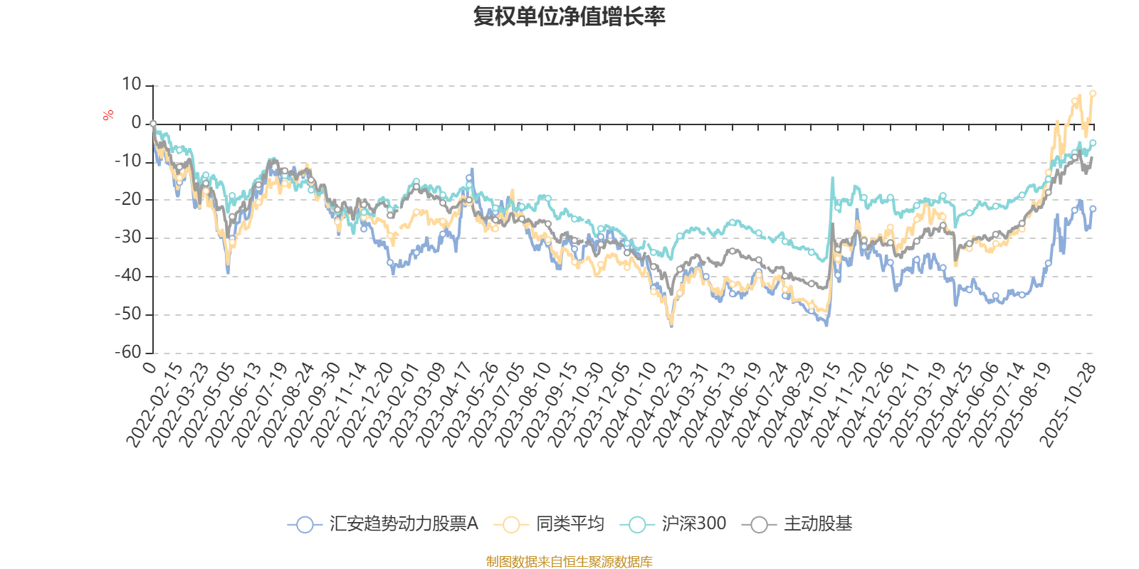 截至10月28日,汇安趋势动力股票A近三个月复权单位净值增长率为33.49%,位于同类可比基金37/63;近半年复权单位净值增长率为36.71%,位于同类可比基金45/63;近一年复权单位净值增长率为21.68%,位于同类可比基金55/61;近三年复权单位净值增长率为2.48%,位于同类可比基金49/51。