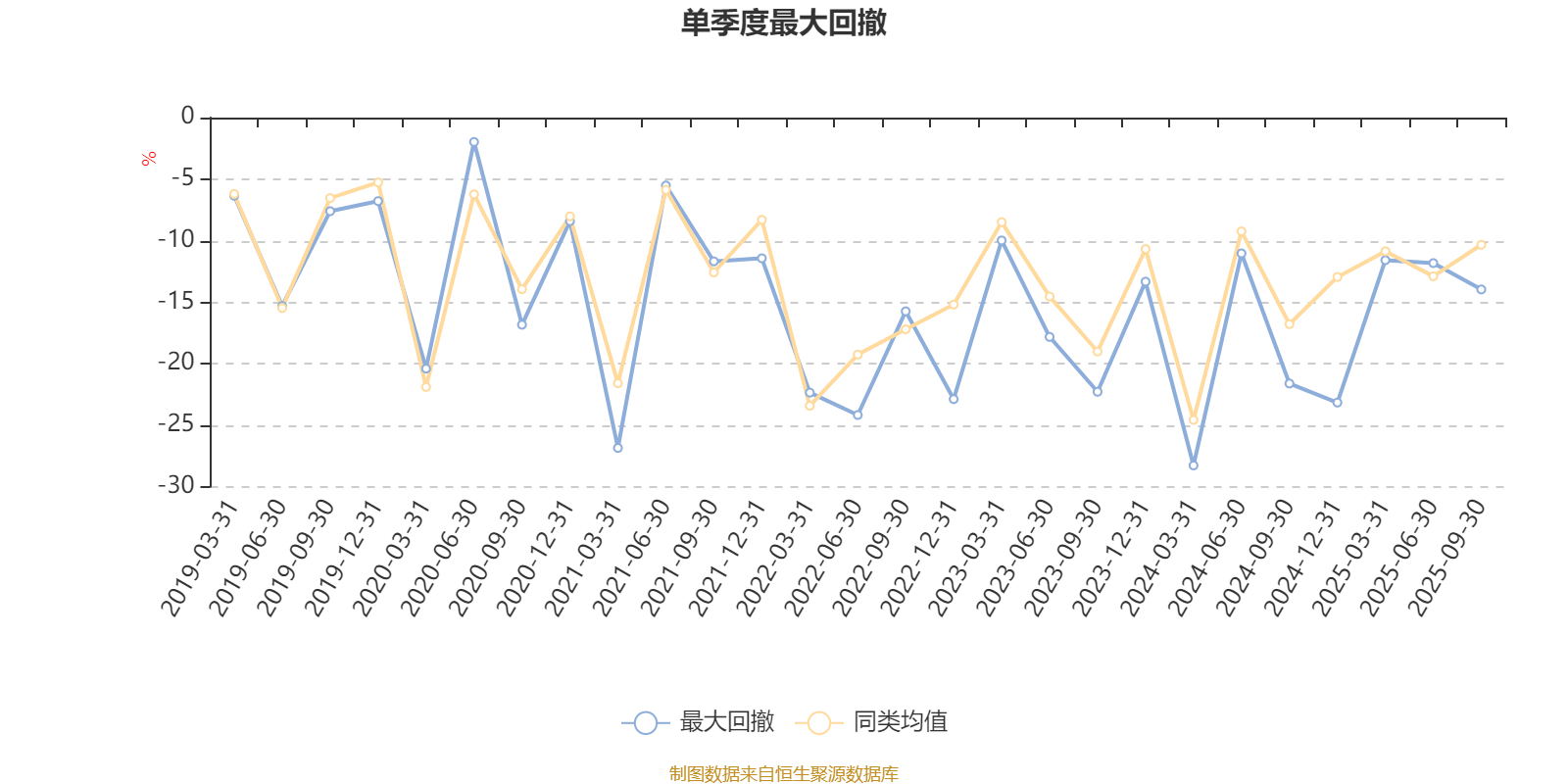 截至10月27日,基金近三年最大回撤为47.18%,同类可比基金排名31/51。单季度最大回撤出现在2024年一季度,为28.28%。