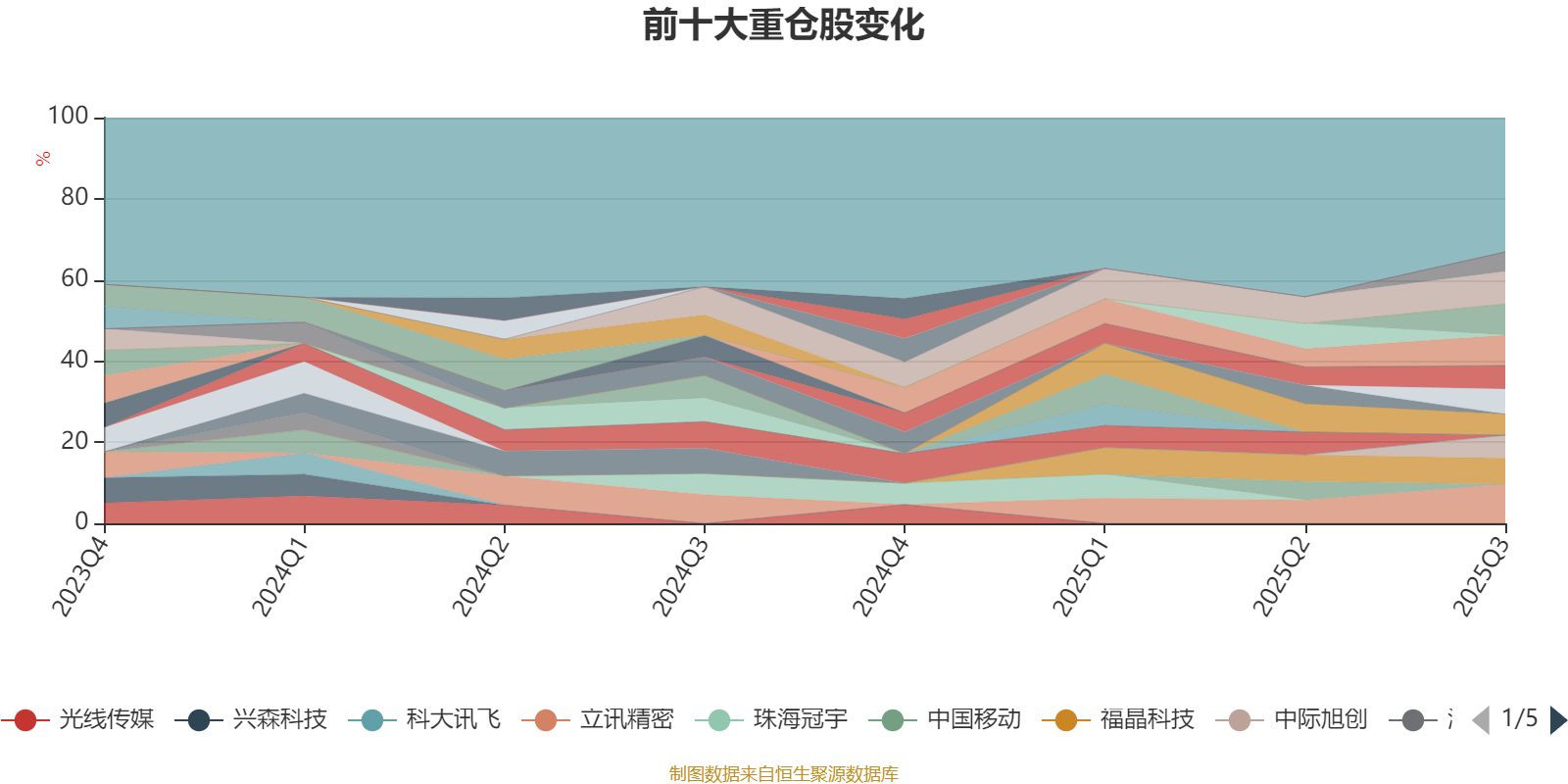 基金管理人在三季报中表示,本基金 2025 年三季度重点配置在电子、通信、传媒、计算机和智能汽车方向。