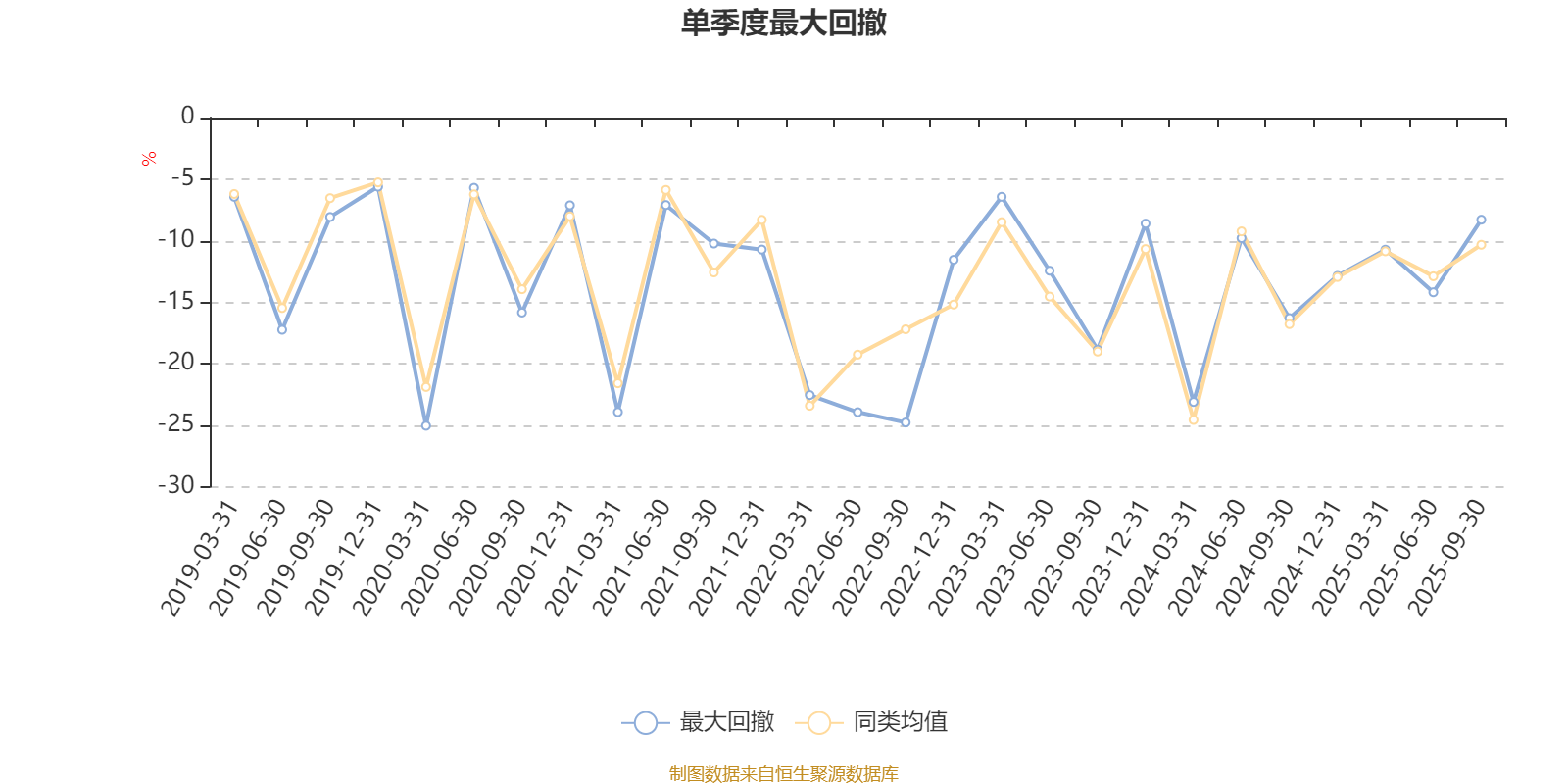 截至10月27日,基金近三年最大回撤为43.2%,同类可比基金排名22/51。单季度最大回撤出现在2020年一季度,为25.05%。