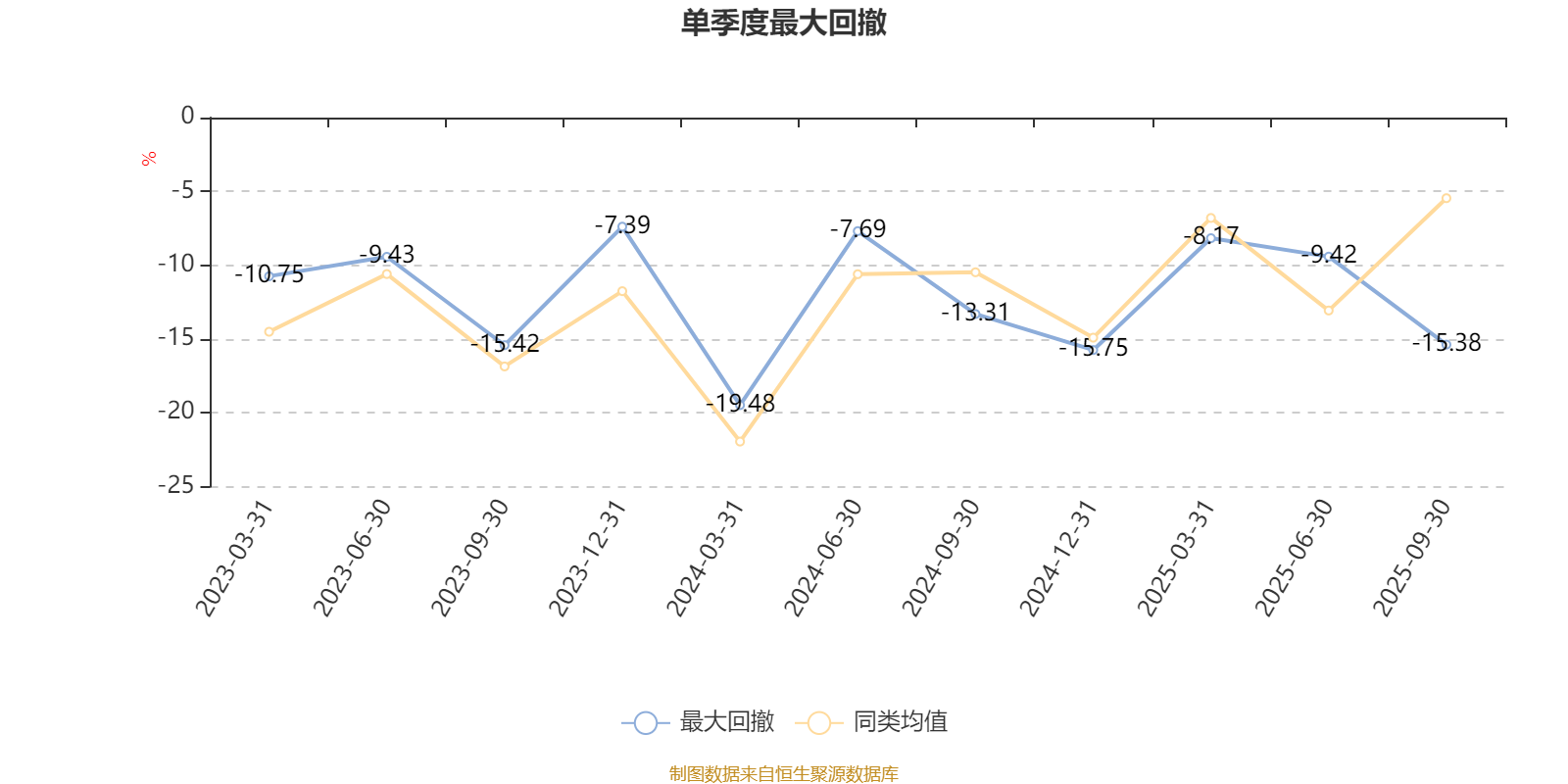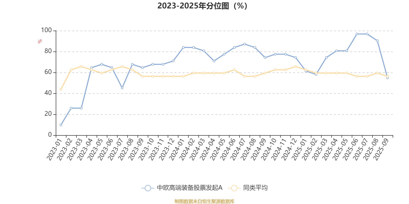 通过所选区间该基金净值增长率分位图,可以观察该基金与同类基金业绩比较情况。图为坐标原点到区间内某时点的净值增长率在同类基金中的分位数。
