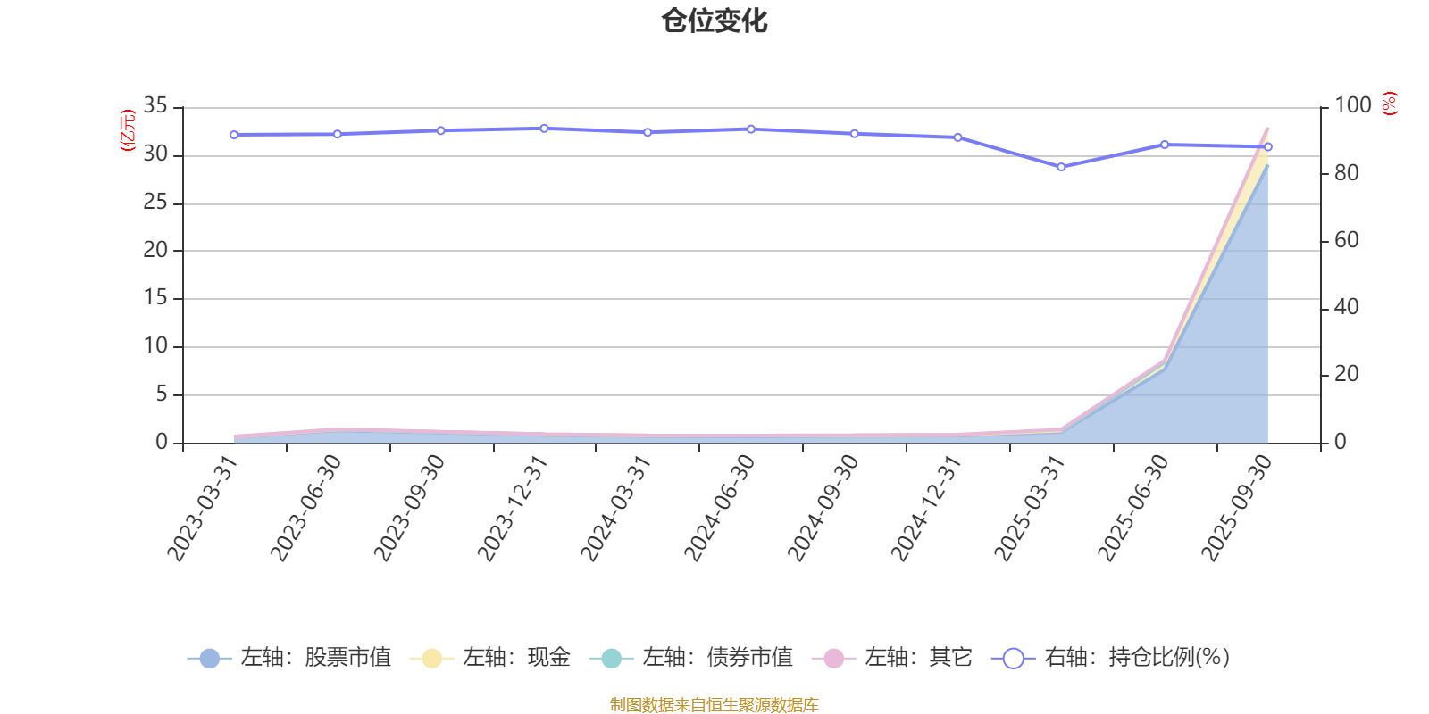 据定期报告数据统计,成立以来平均股票仓位为90.79%,同类平均为87.59%。2023年末基金达到93.67%的最高仓位,2025年一季度末最低,为82.18%。
